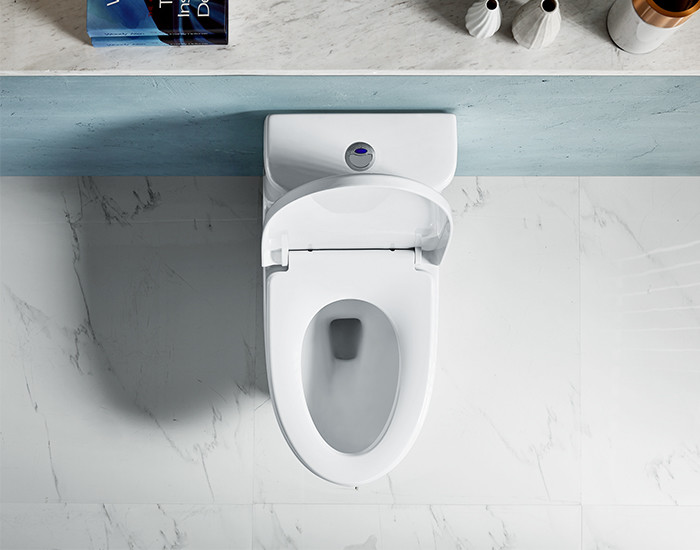 Os toaletes de uma peça só são entregados como uma única unidade, integrando a bacia de toalete, o tanque de água, e a base.