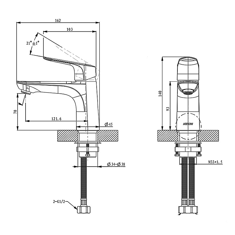 | Tamanho (milímetros) | G1/2,162mm, 140mm |
