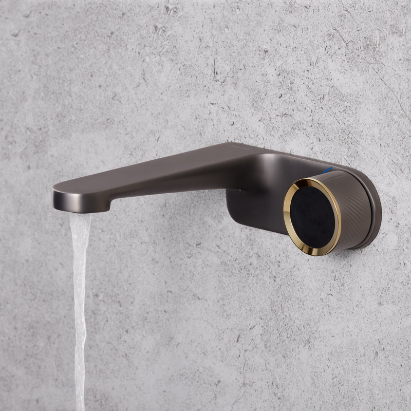 1. Os torneiras fixados na parede da bacia fornecem um olhar lustroso e moderno ao seu