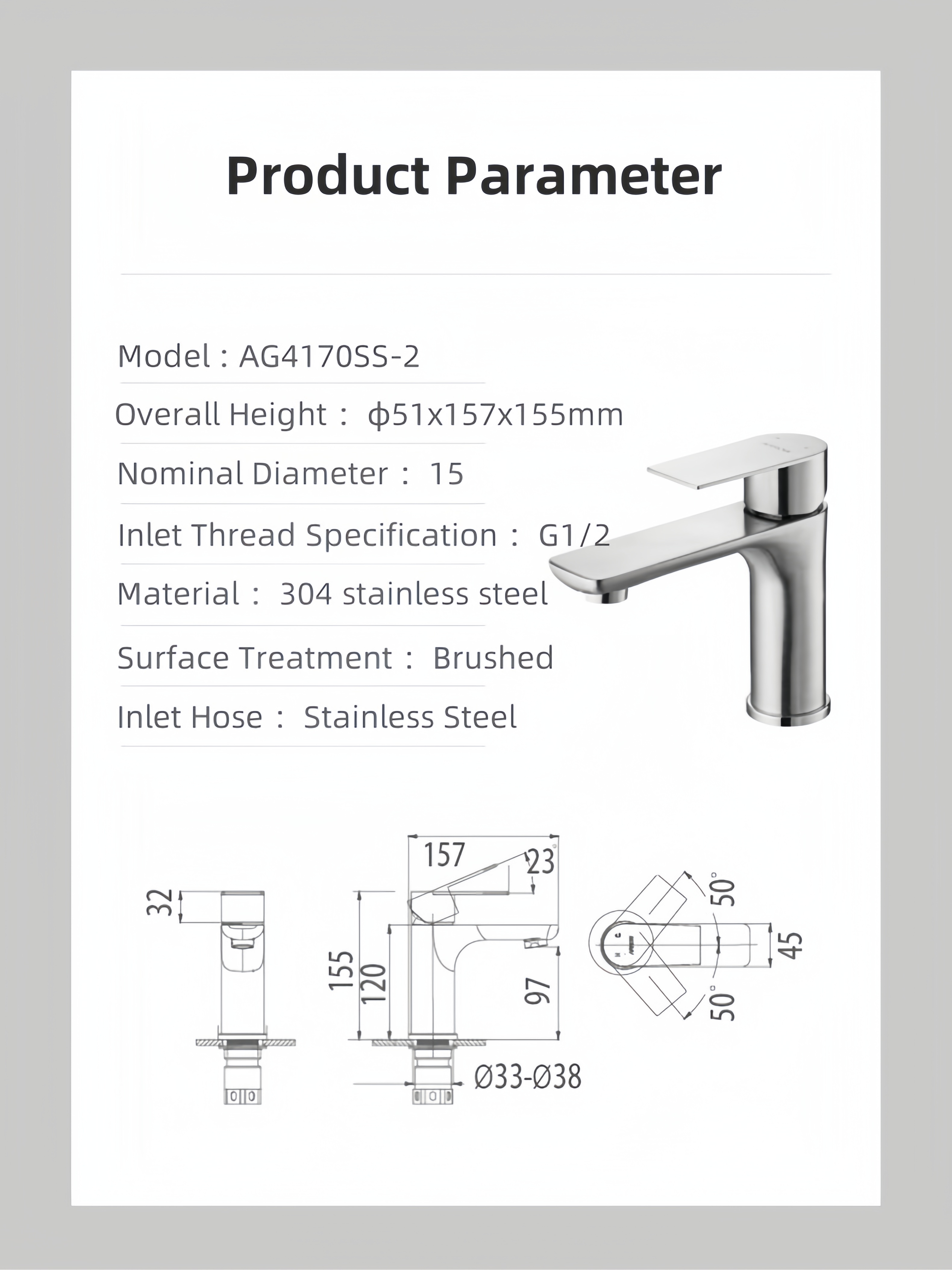 | Surface Treatment | Brushed Stainless Steel |